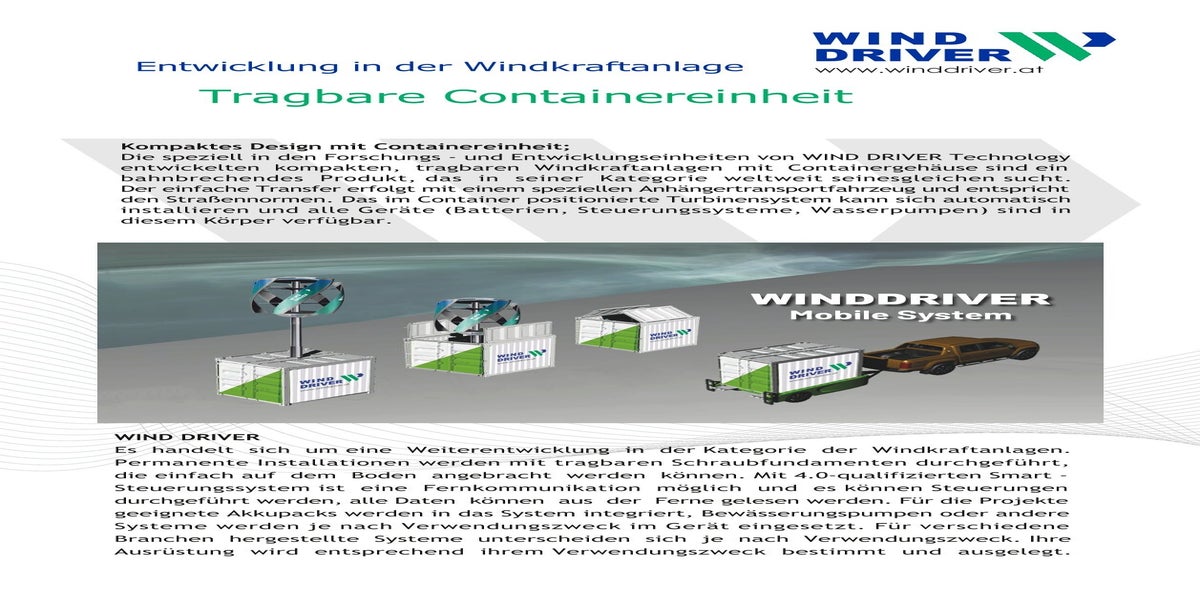 WINDDRIVER hat sich zum Ziel gesetzt, innovative Lösungen für Energieeffizienz und Nachhaltigkeit bereit zu stellen.