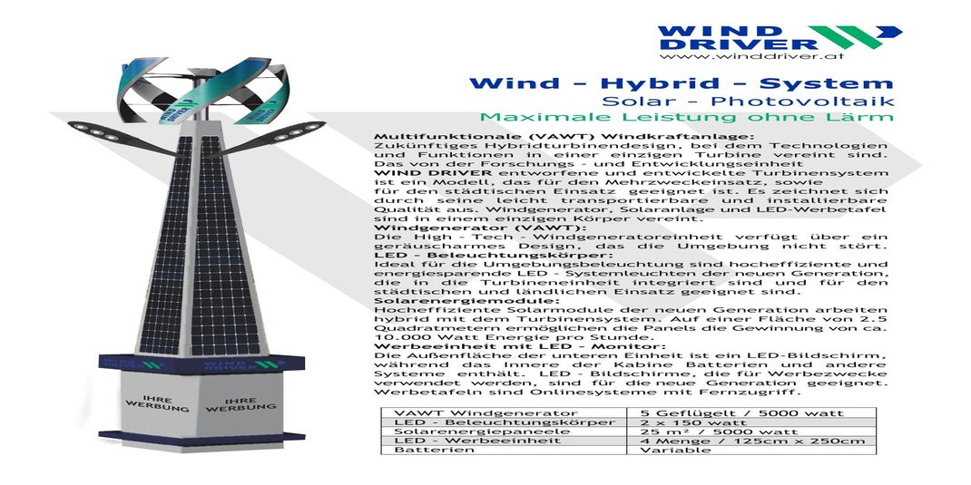 Unsere Windturbinentechnlogie die mit Solarmodulen kombiniert werden kann, ist ein Vorreiter der Trends in der Branche!